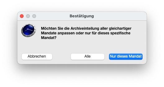 Es erfolgt die Abfrage, ob die Archiveinteilung nur für dieses Mandat oder alle Mandate angepasst werden soll: