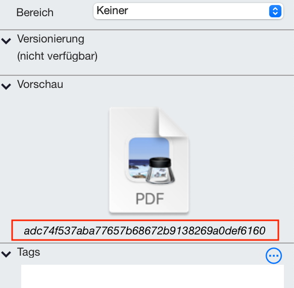 - Die Prüfsumme selbst ist im Informationsdialog zum Dokument sichtbar: