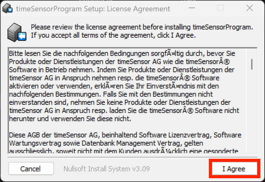 Note for IT administrators: The installation path of timeSensor Client plays a crucial role in the functionnality of the automatic update mechanism. Therefore, the software must be installed in a folder where the users have full rights inside, as the users will be executing the updater by themselves.