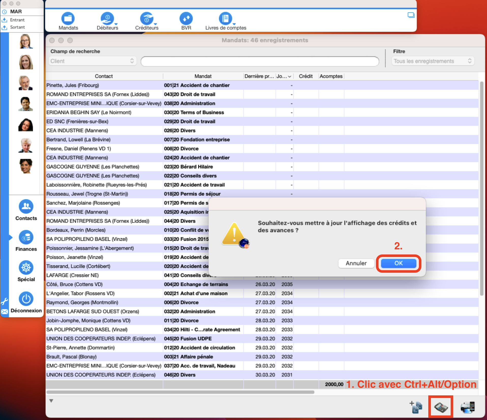 Cette fonction est un peu cachée : cliquez, tout en maintenant les touches Ctrl et Alt (Option sur Mac), sur l’icône calculatrice en bas de la liste des mandats :