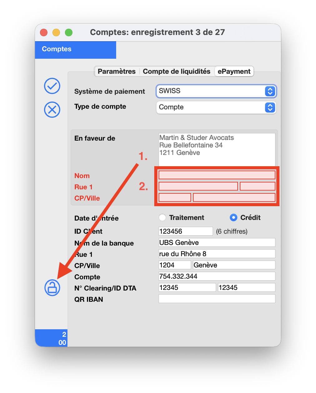 Pour pouvoir modifier les champs, déverrouillez l'enregistrement en cliquant sur le cadenas en bas à gauche.