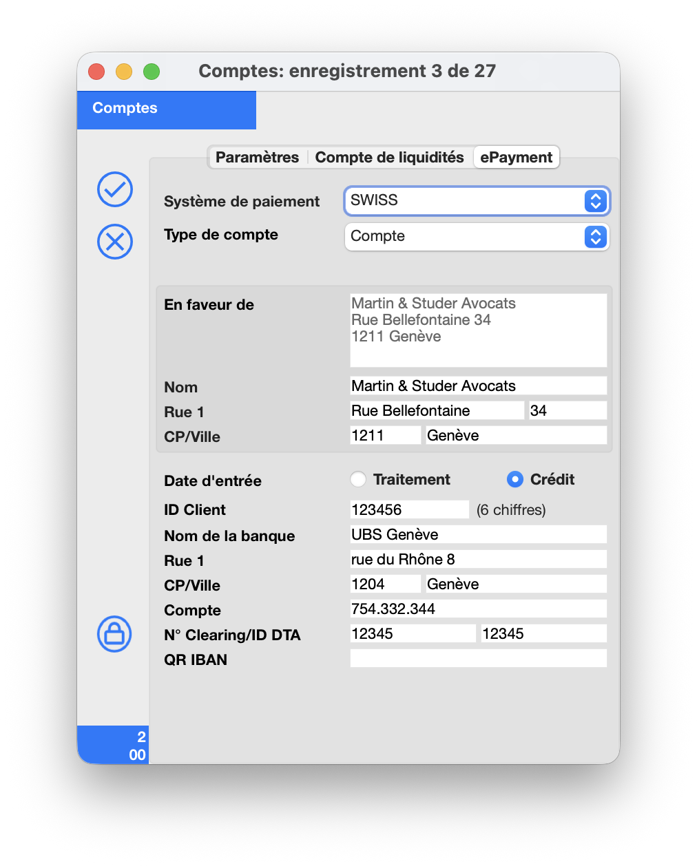 Si vous préparez le compte pour la première fois à l'utilisation de bulletins de versement QR, sélectionnez l'option SWISS sous "Système de paiement".
